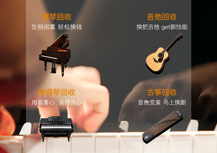 乐人乐器平台专业从事二手钢琴回收、维修、经销批发、零售的大型钢琴机构,同时回收吉他、电钢琴、古筝等乐器,不限品牌型号、不限新旧。同时开设钢琴“以旧换新”的业务,买新琴补差价!